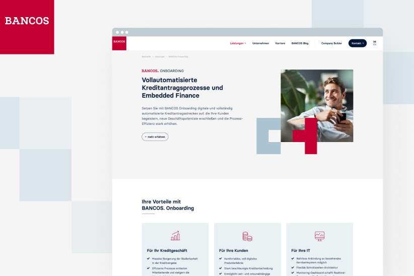 We are using the new brand identity to communicate a number of important points relating to the company’s corporate and product strategy more clearly. This was initially accompanied by a brand architecture decision. While both the product name “BANCOS” and the associated cube element have long been part of our company, from now on we will be using BANCOS even more clearly and consistently than ever before in our brand communication. The link with our current five main solutions shows that, in addition to the core banking system, our portfolio has now become much broader and more modular. Over time, we have continuously developed and expanded our range of software solutions – such as with the core agnostic products Online Banking and Onboarding, which, among other things, enable workflow automation and embedded finance.