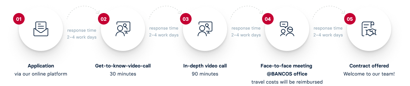Working in a quiet cubbyhole? Not at BANCOS! Would you like to work in an attractive and social company? 'How are you?' 'What are you doing?' 'How can I help you?' These are the daily questions that you will be asked by numerous friendly and competent colleagues. It may be a business, but it is more like a family!