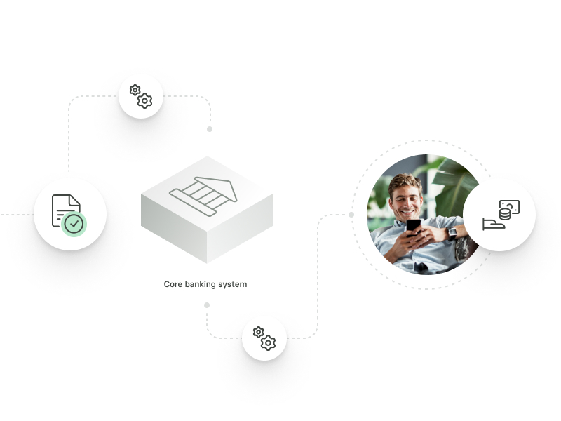 Once the credit application has been completed and accepted, the data on the credit and the applicant is transferred fully automatically via interface to your core banking system and, if applicable, your CRM, and the disbursement of the credit or the opening of the credit line is initiated.